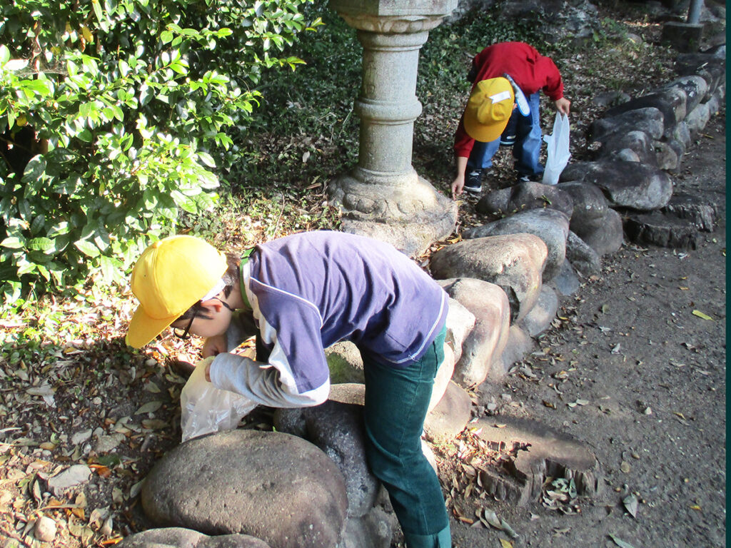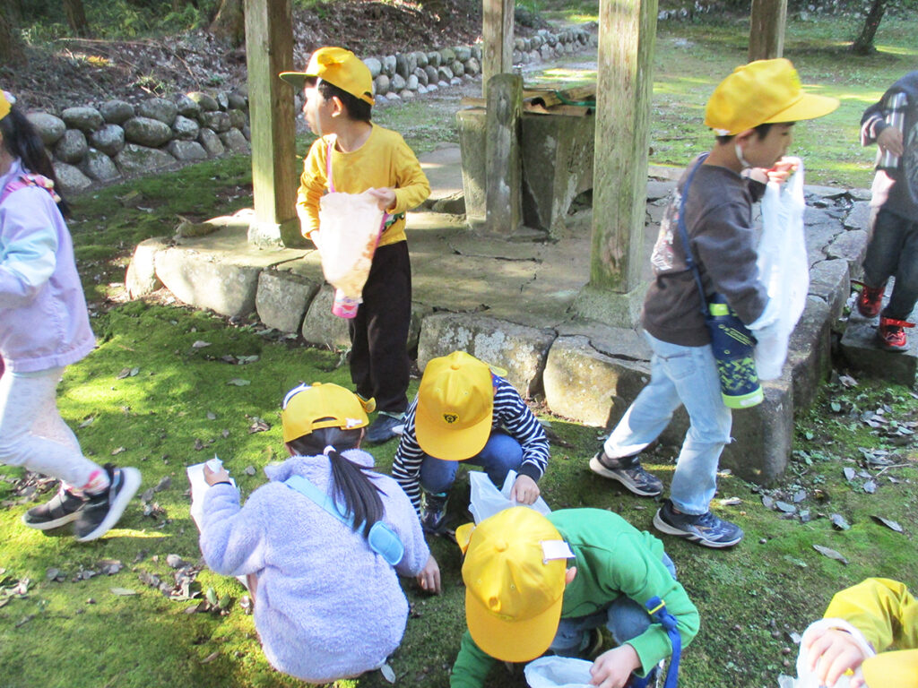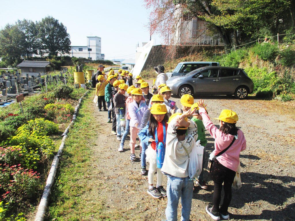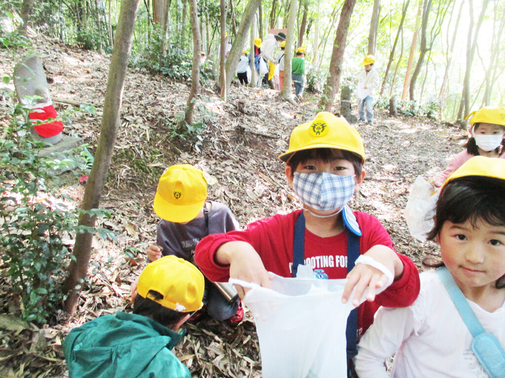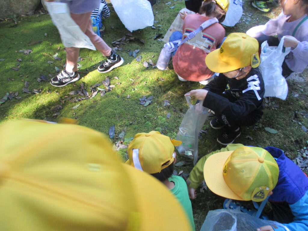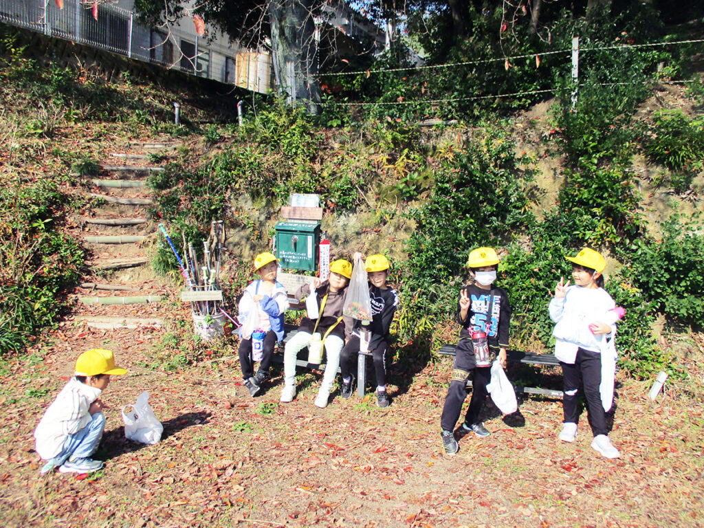 その後、山王山に移動しました(子どもたちが安全に通ることができるよう、庭先を通らせてくださったり、栗のいがを掃いて集めてくださったりと地域の方に大変お世話になりました)。