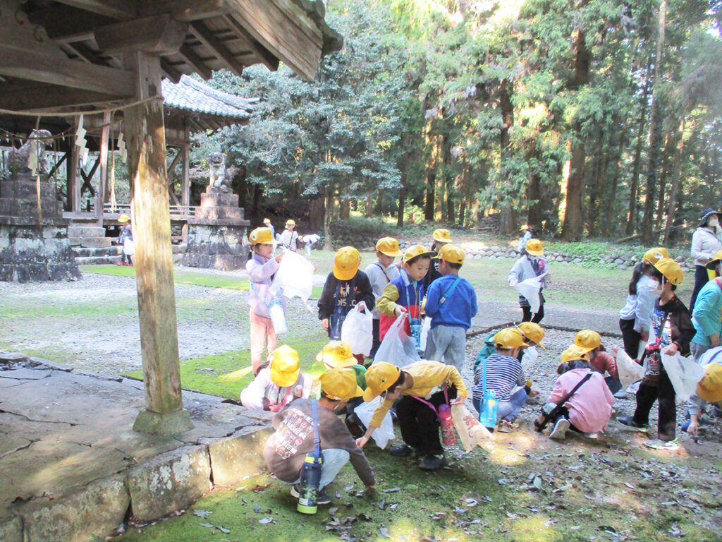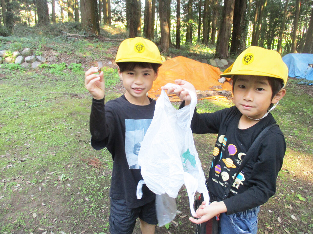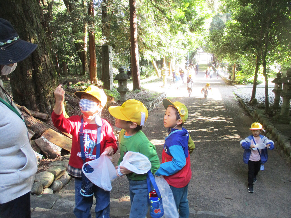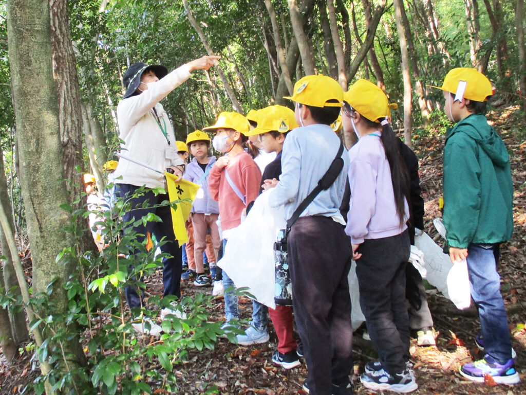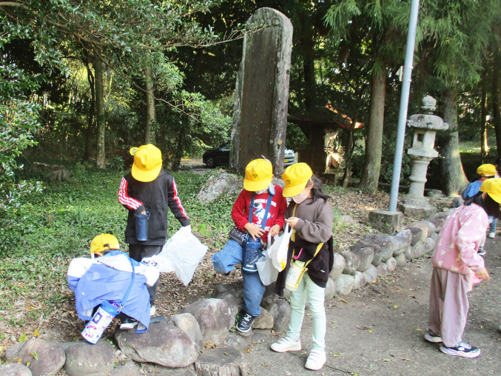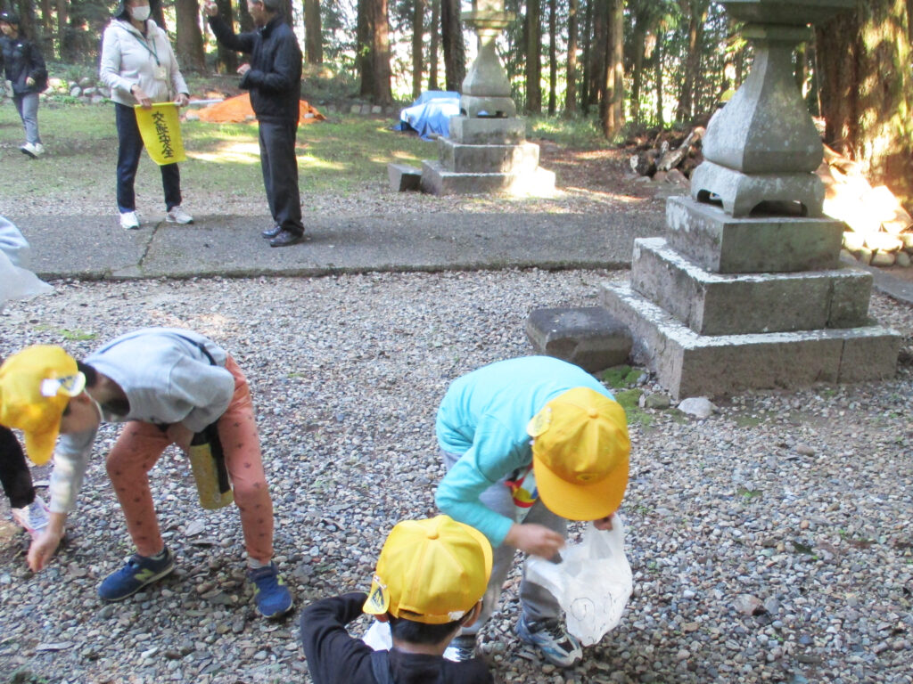 その後、山王山に移動しました(子どもたちが安全に通ることができるよう、庭先を通らせてくださったり、栗のいがを掃いて集めてくださったりと地域の方に大変お世話になりました)。