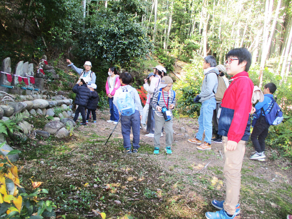 下山途中では、点在する石造物を見たりシイの実見つけたりして、山の自然や地域の信仰の山であったことを感じとれたのではないでしょうか。