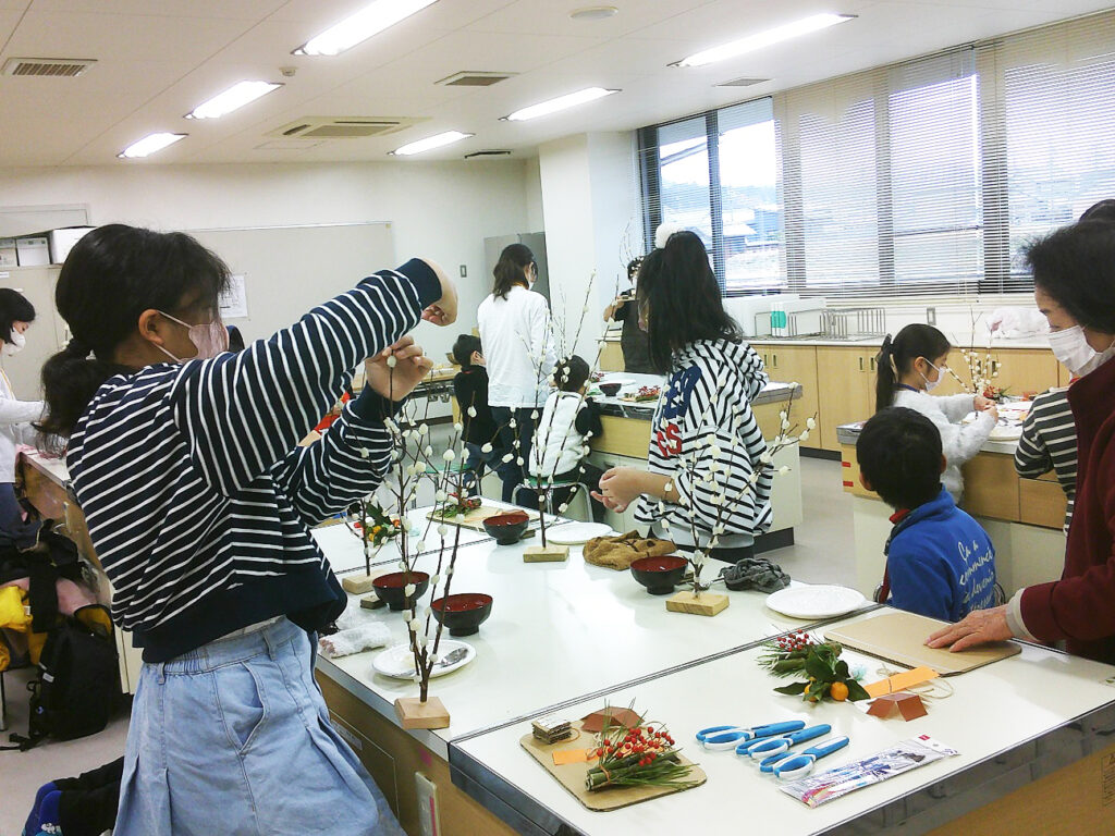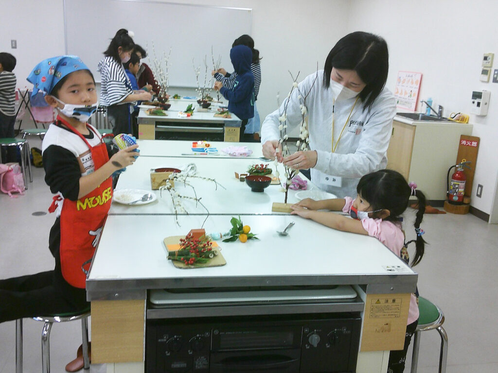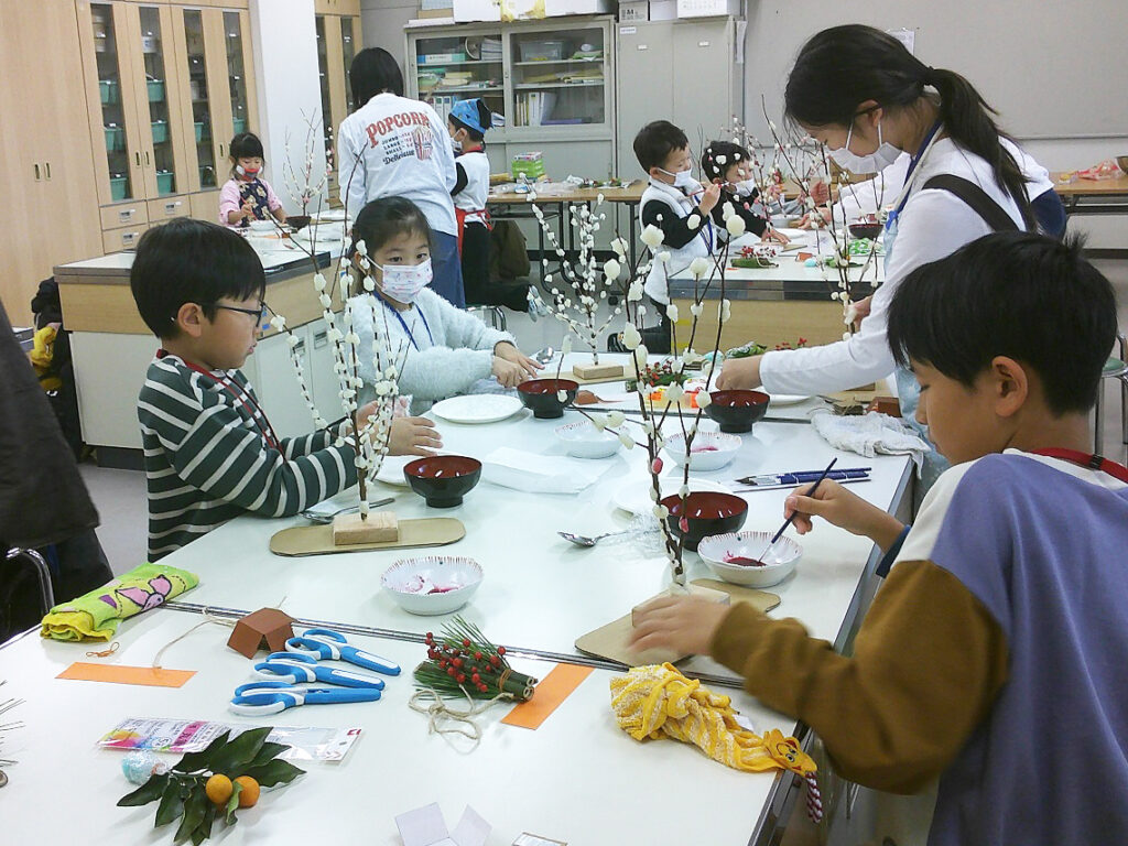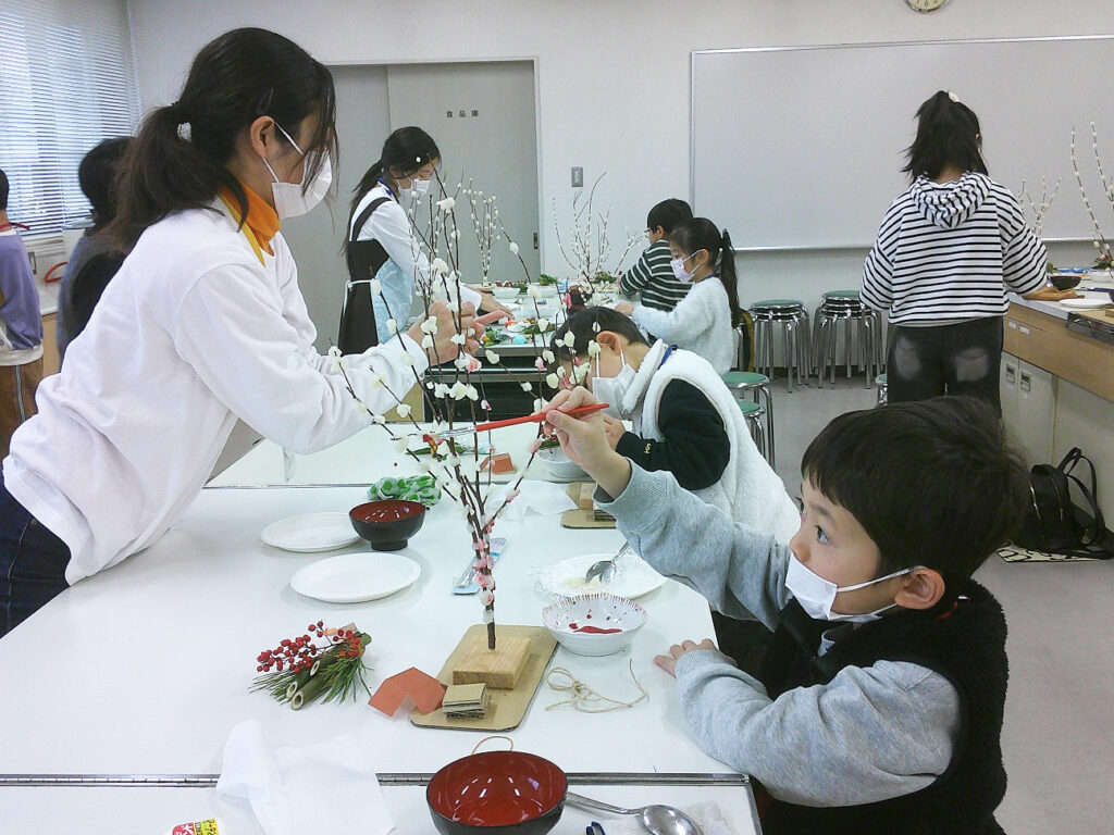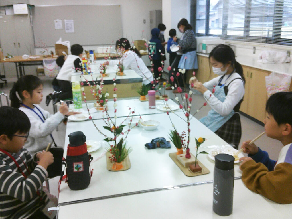 どの子も手を休めることなく集中して取り組み、終了後の片付けをしながら、お餅の試食や金柑のつかみ取りを楽しみました。